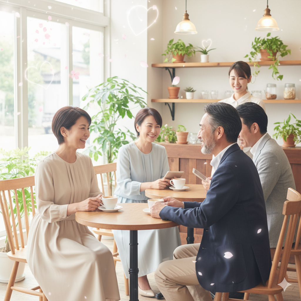 「結婚だけが答えではない」という多様なニーズへの対応: 50代・60代の方からは、「入籍にこだわらず、人生を支え合うパートナーが欲しい」という切実な声がありました。この声に応えるのが、穏やかな関係を築く【午後カフェ】です。